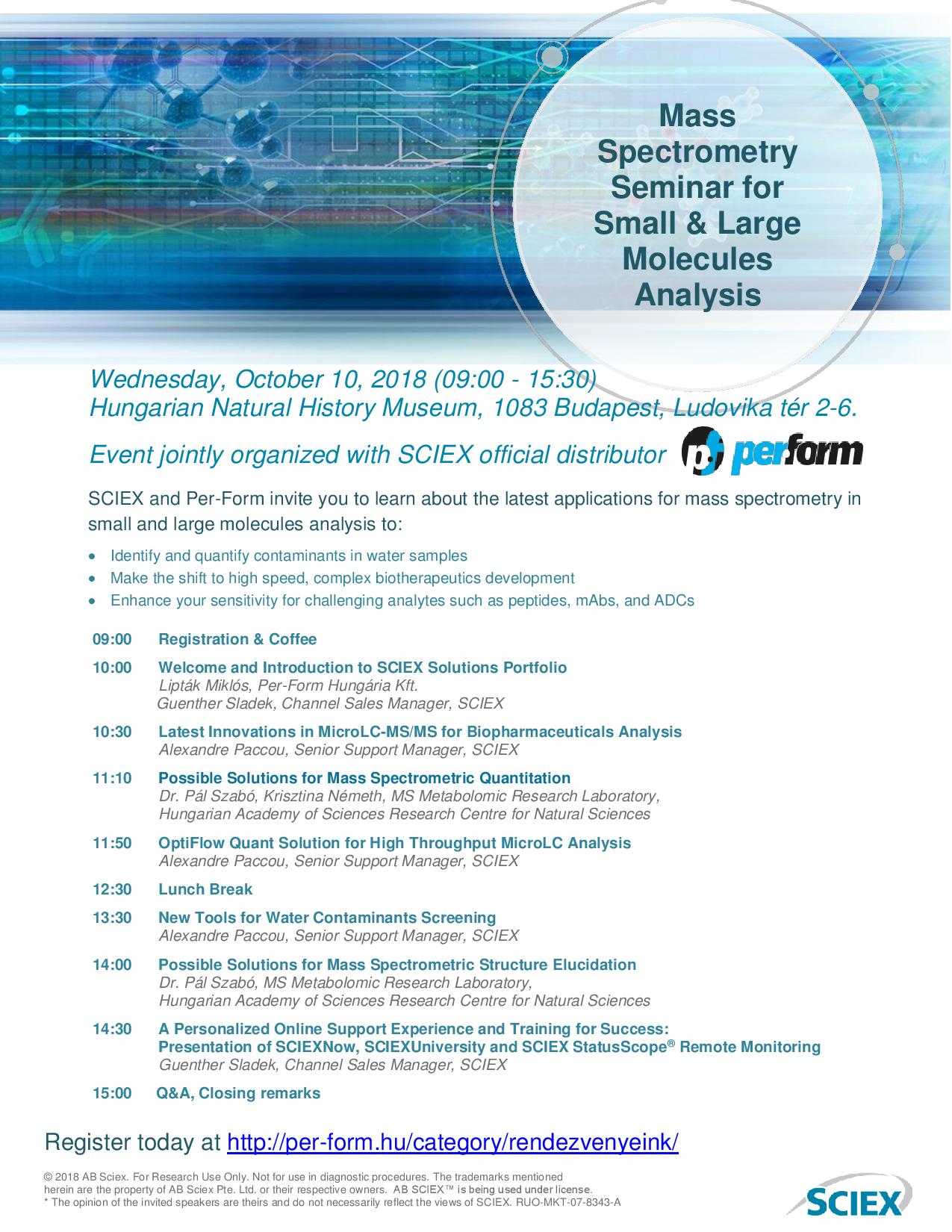 10:00 Köszöntő és a SCIEX Solutions Portfolió bemutatása - Lipták Miklós, Per-Form Hungária Kft., Guenther Sladek, Channel Sales Manager, SCIEX